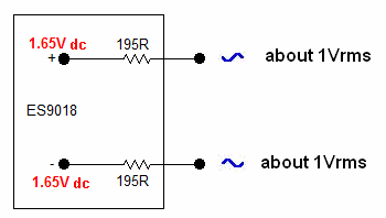 |  The ES9018 have 8 channel DAC that can be configure in parallel to get a stereo output and to increase the performances. The ES9018 DAC in theory can work with a voltage output or current output. Any DAC output have an internal 780ohm resistor to allow the parallel when it is used in voltage output mode. In stereo mode the internal resistor will be 780 / 4 = 195 ohm. Using the current mode should be necessary to use an external current to voltage stage (I/V).