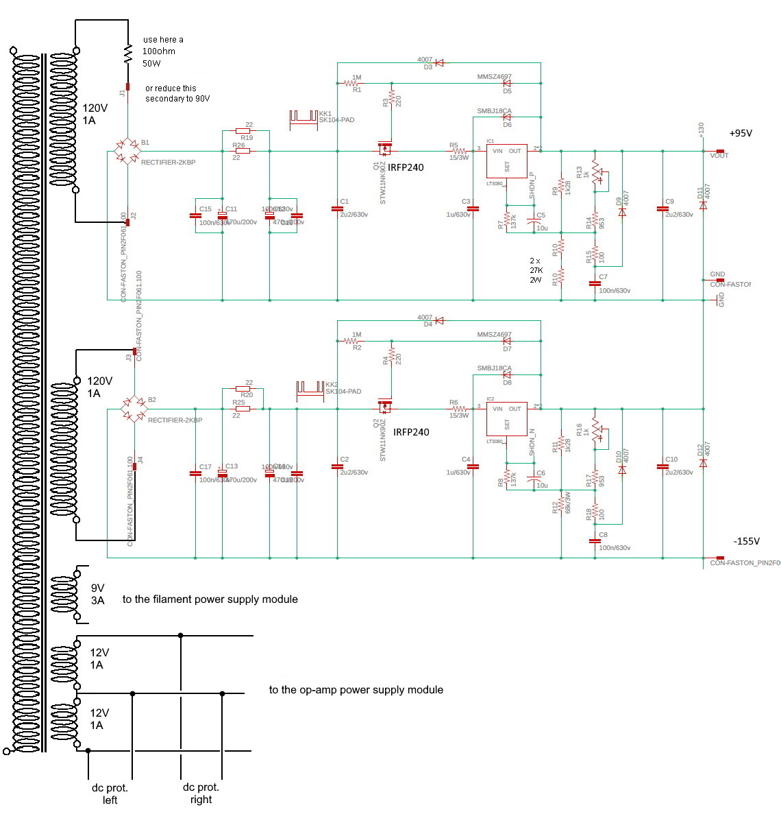 The driver stage need a good low ripple regulated power supply so has been used is a modification of the original Michael Maida regulator published on the Texas Instruments application note.