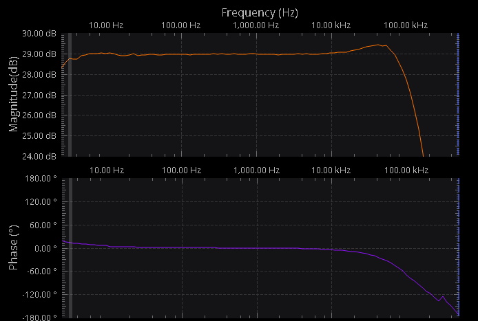 - large frequency range about 0Hz to 600KHz at -3dB
