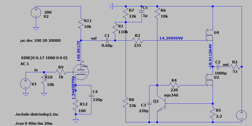 The operating point of the tube was chosen for minimum distortion.