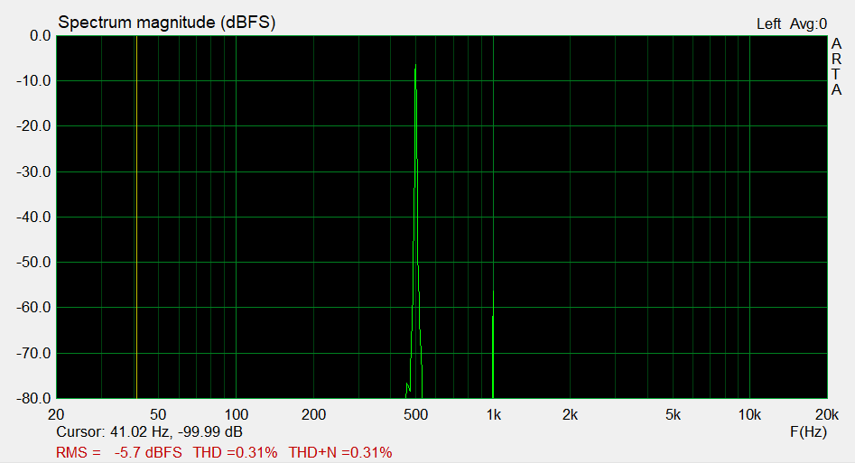 Distortion with an output level of 5.5Vrms, a very good result for a vaccum tube without feedback