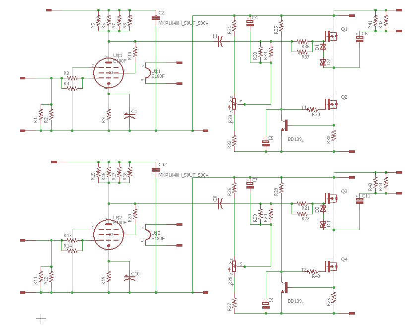 This project is an hybrid amplifier composed by a tube voltage amplifier followed by a single ended mosfet current amplifier with an exclusive configuration.
