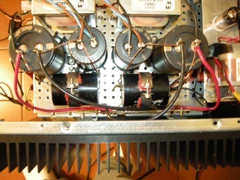 In the output stage I have used 50V Nichicon Super Through because lower voltage sound better and in the the driver stage 100uF 450V Kendeil K05 + 150uF 200V old stock Blackgate.
