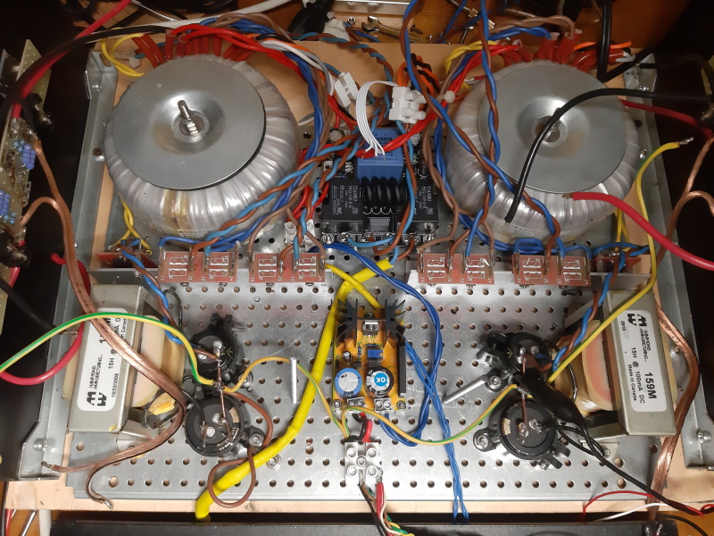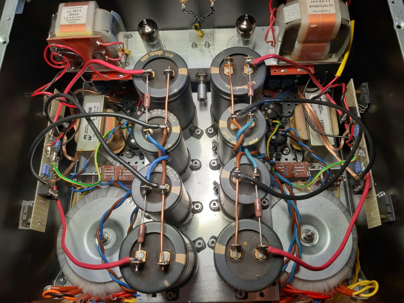 Using a CLC power supply in a normal amplifier you can reduce the noise but in this case the mosfet gate is isolated from the high current power supply so there is no benefit and it is possible to use a single 22000uF or 10000uF + 15000uF like in my case.