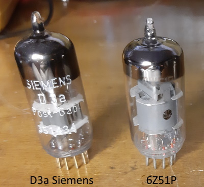 D3a and 6Z51 tubes in the triode connection have about 70 - 80x of voltage gain and an internal resistance about 2 - 2.8Kohm.