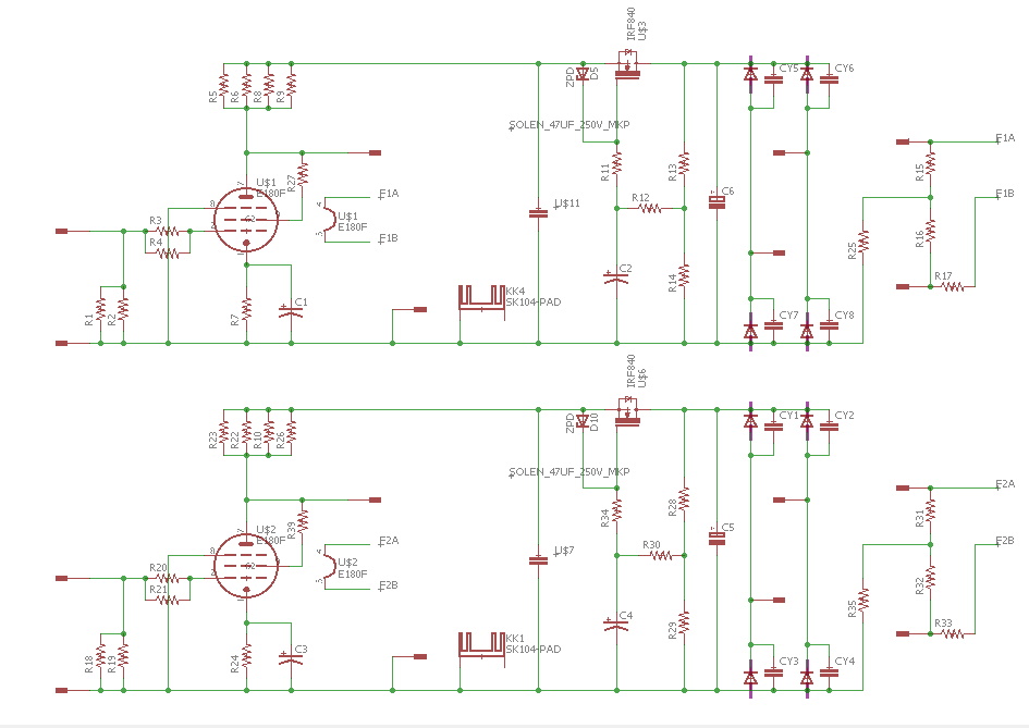 his is the same schematic used in the Power Follower with E180F but here it is necessary another tube to get enough gain and dynamic range.