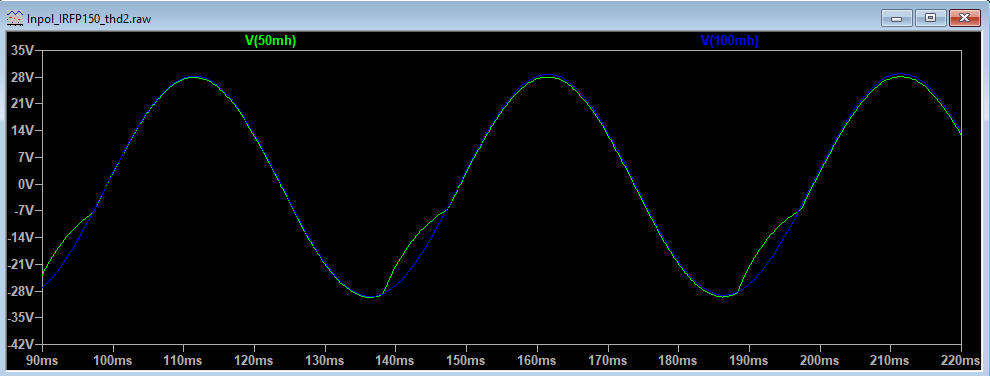 but the main problem with little choke is the distortion at low frequency, folllows the simulation with 50mH and 100mH.