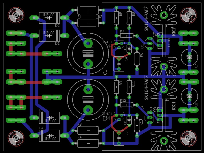 To create a bridge with these TO220 diodes I have created a simple pcb.