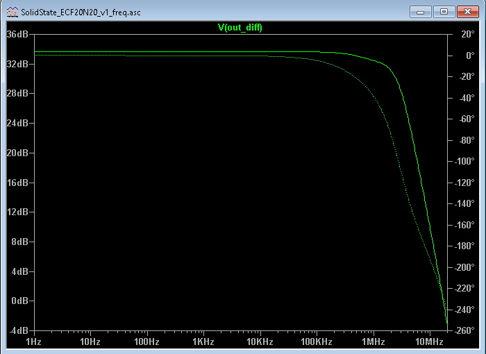 ECW20N20 version with driver +36VDC and output stage at 2x 33VDC and 6dB global feedback