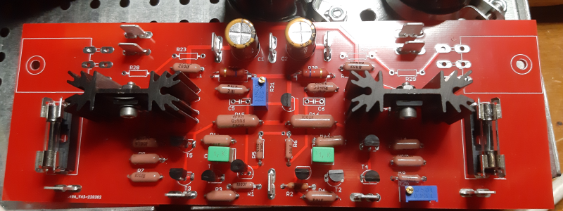 The transformer for the driver stage is the LITE R26-10 (diyclub.biz) an r-core 30VA with 2 x 9V 3A and 2 x 18V 0.5A
