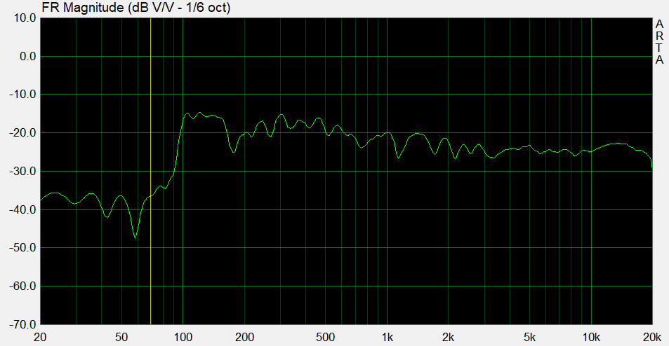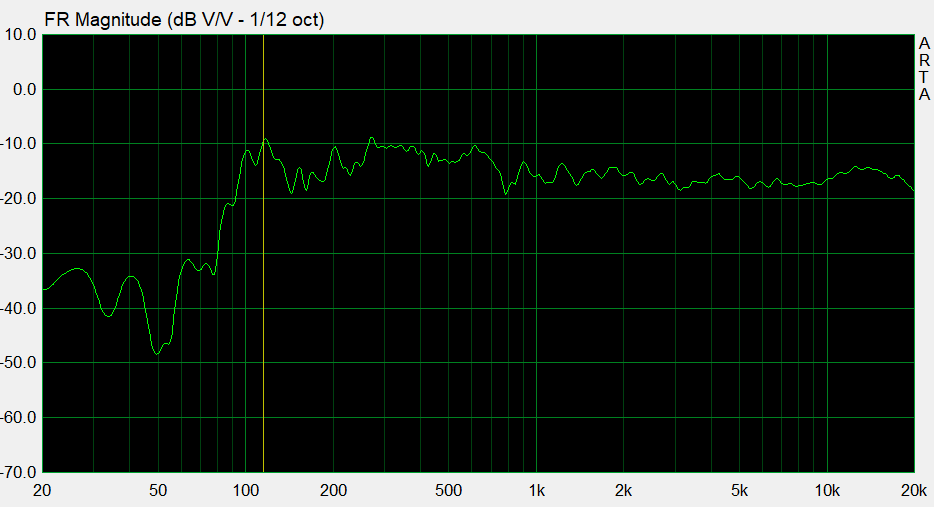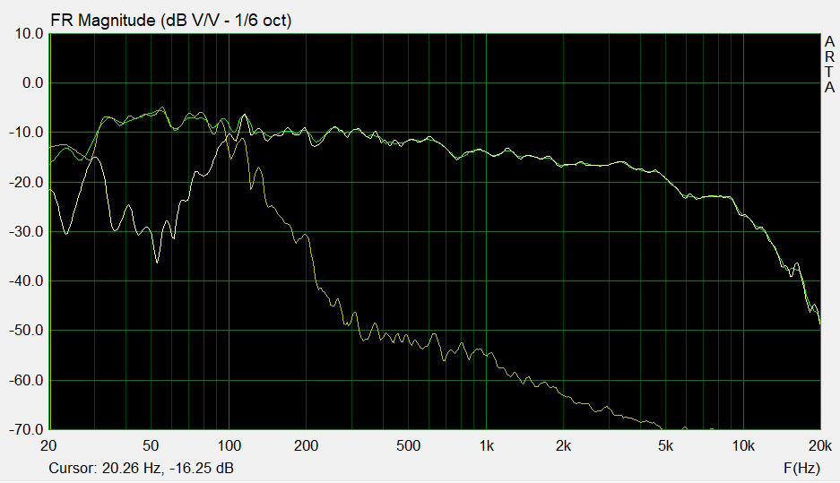 Here is a measurement with the Extreme H-frame subwoofer at 20cm at a height of only 55cm so above the subwoofer box only to show the crossover point.