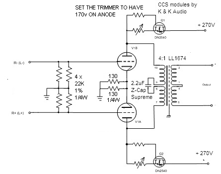 The low internal resistance of the EC86 ensures a good low and high frequency response. To create this output stage I have used