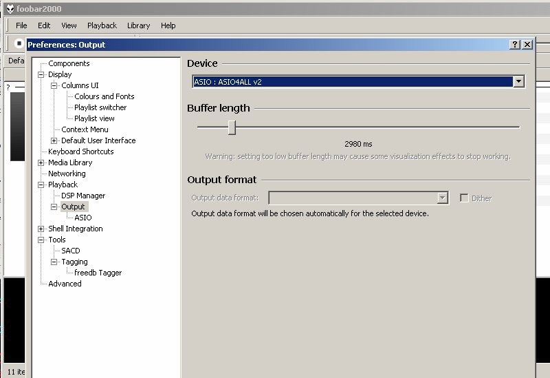 If you select as output device the ASIO4ALL when you start to play any tracks an little icon will be insert in the Appl. Bar.