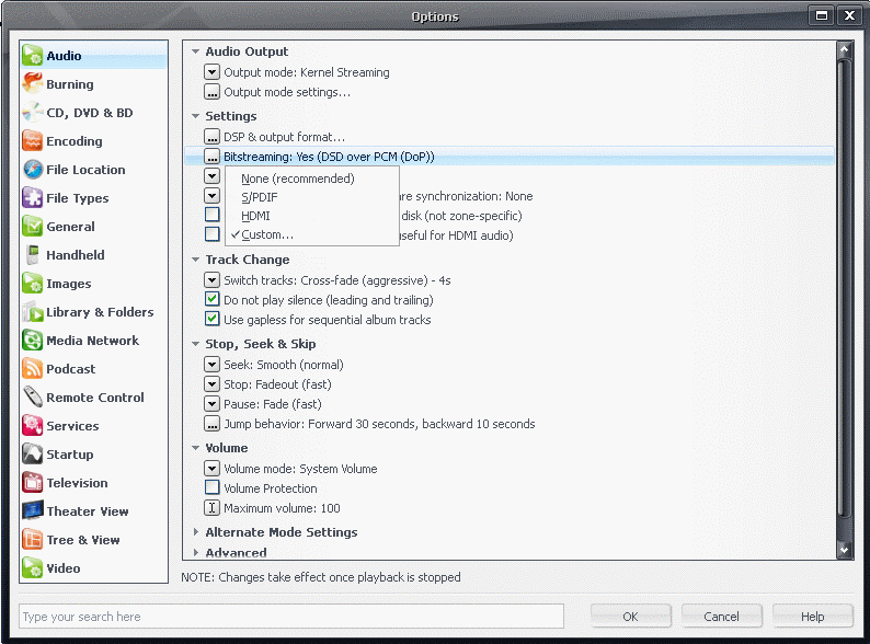 The JRiver is more simple and with this configuration you can play 44,88,96,192,384KHz, DSD files and SACD ISO.