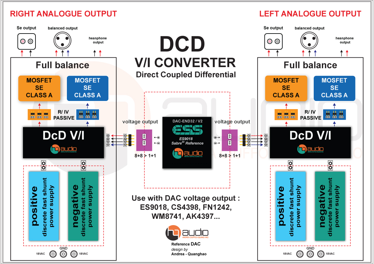 The DAC module use a dedicated power supply with shunt separated for any section of the ES9018:All the power supply use a controlled current source and a hi-speed shunt linear regulator.