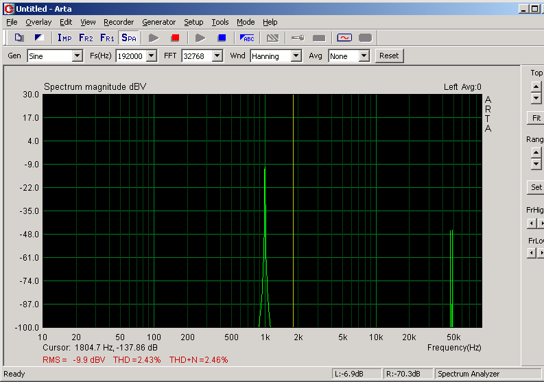 Follows the measurement of the DAC board on AD1865 output without any filter, the sampling frequency 44KHz is at -35dB.