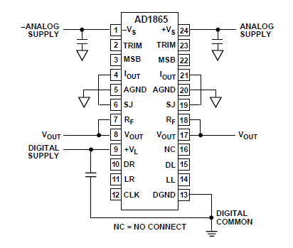 I suggest only a MK132 Caddock resistors like current to voltage converter (I/V) so the internal active I/V of AD1865 is not used.