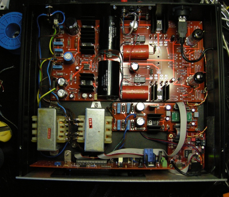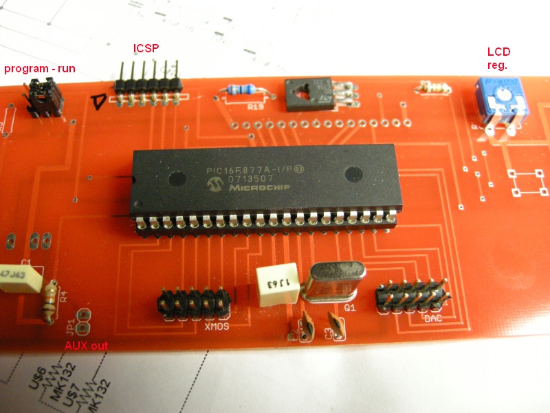 In my first test I have used a little PIC to have only basic functions but in order to display volume level, input sampling frequency, USB link status and to have a remote command as been used a large PIC Microcontroller.