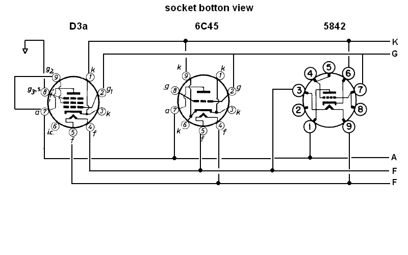 Many of these tubes have a plate resistance about 2Kohm but only the D3A, 6C45 and 5842 have an amplification factor greater than 40. D3A specifications in triode connection: