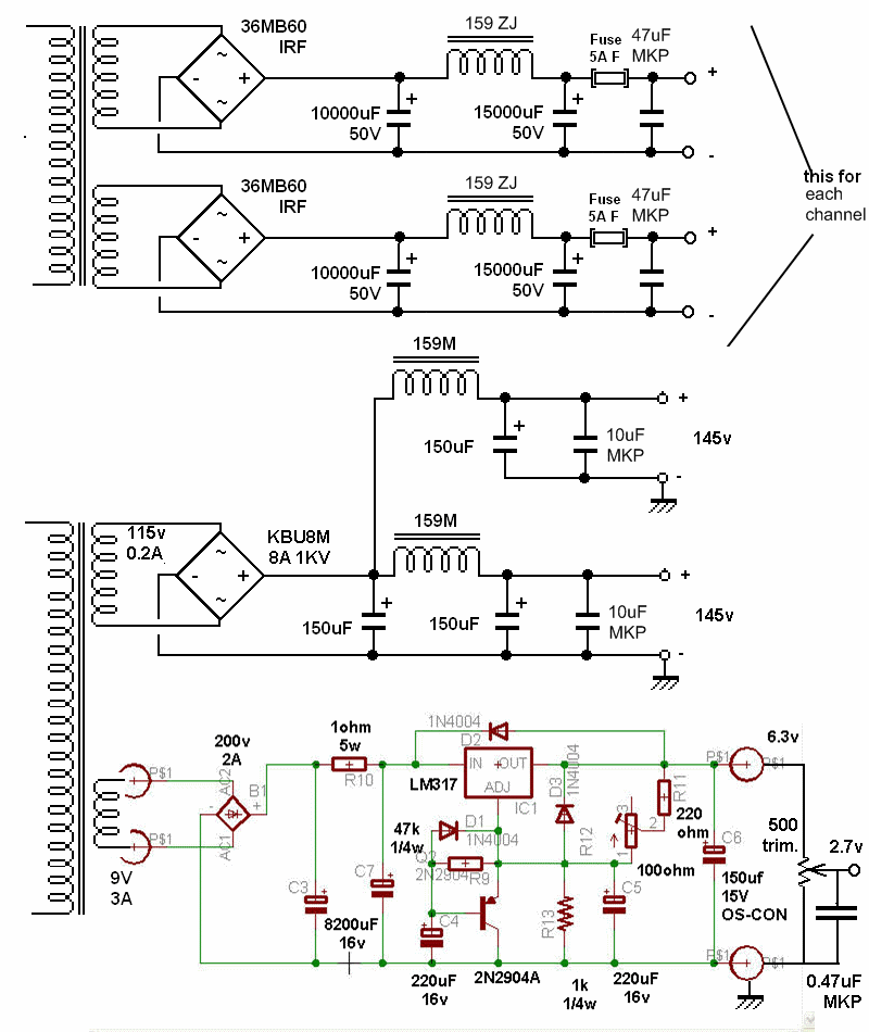 To increase the speed of the power supply has been inserted a 39uF Solen MKP in parallel to the electrolitycs.
