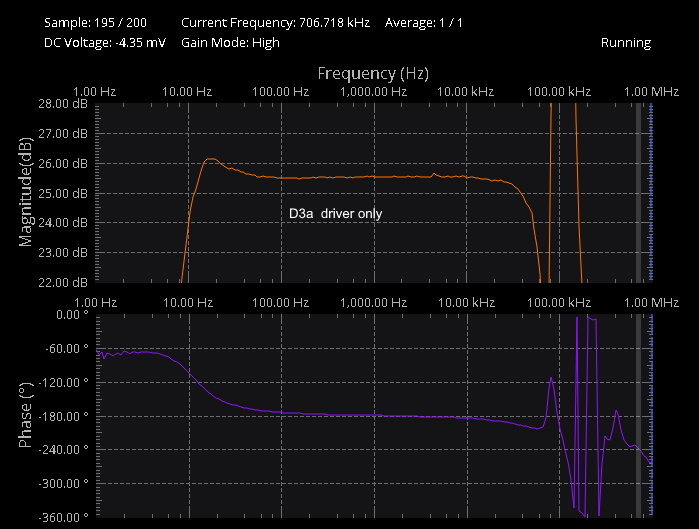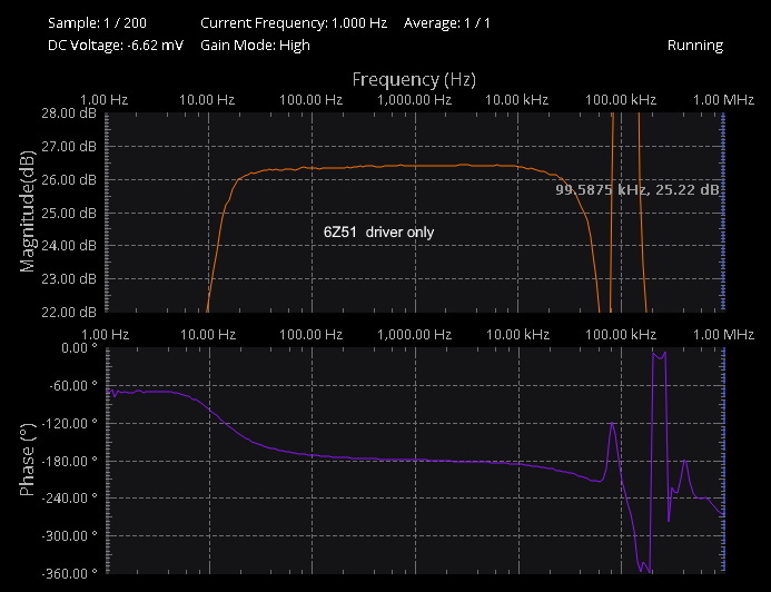 Here we have a voltage gain of 25.6dB and about 8Hz - 60Khz at -3dB (Ck create a little peak at 13Hz).