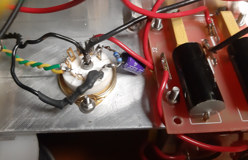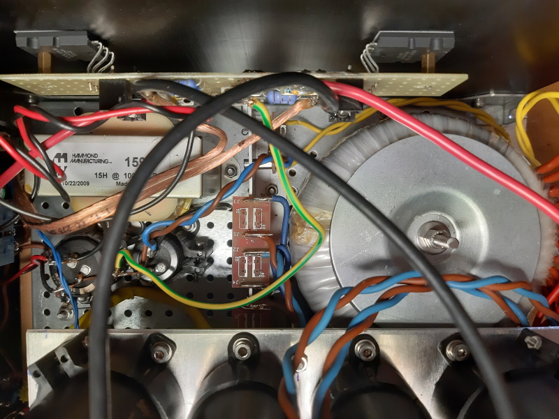 Using a CLC power supply in a normal amplifier you can reduce the noise but in this case the mosfet gate is isolated from the high current power supply so there is no benefit and it is possible to use a single 22000uF or 10000uF + 15000uF like in my case.