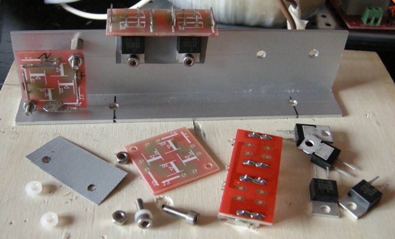 To create a fast diode bridge with these TO220 and large SMD chips I have created 2 simple pcb.