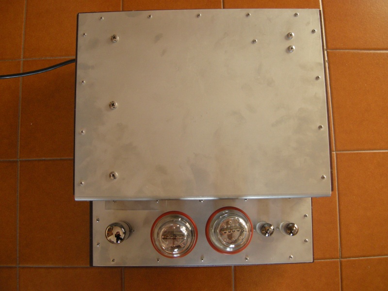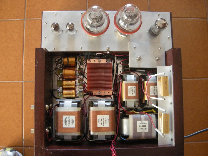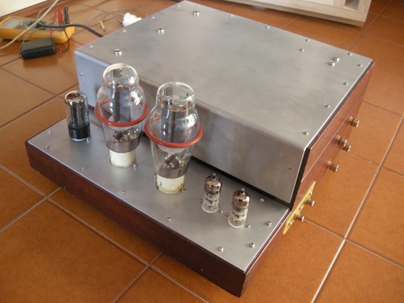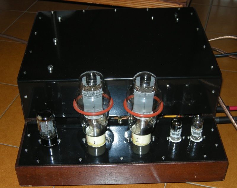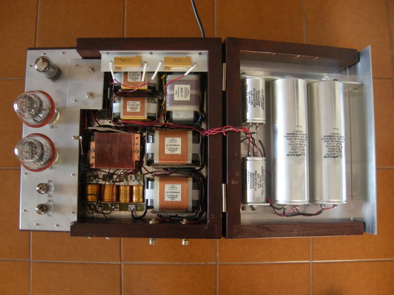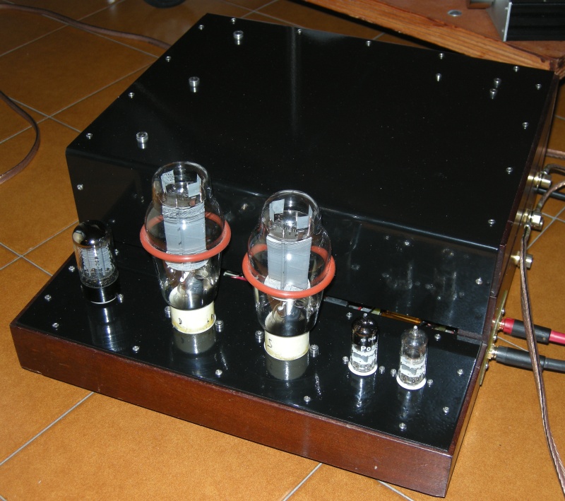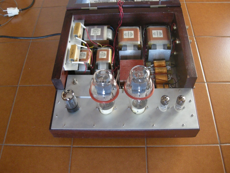 This amplifier use direct heating tubes with AC filaments so at the startup some 50-60Hz hum can be ear.