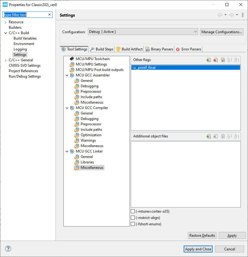In order to use the print of float numbers with decimal is necessary add this set and after will be possible use the standard function: