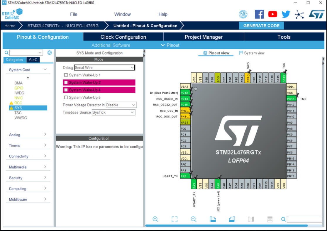 There is also a function to generate the code for pin initialization in a visual mode but I don't like to use this because the automatically generated code is mixed with the manually entered code and if you don't follow the rules some changes could be lost.