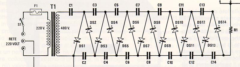 The capacitor in the design is a power supply 1.5-7Kvolt