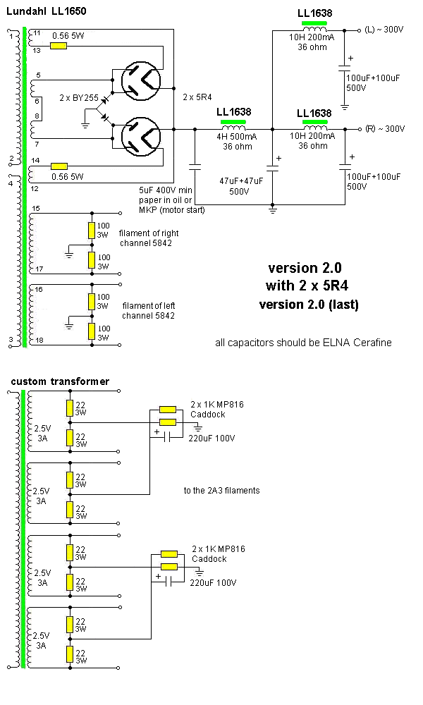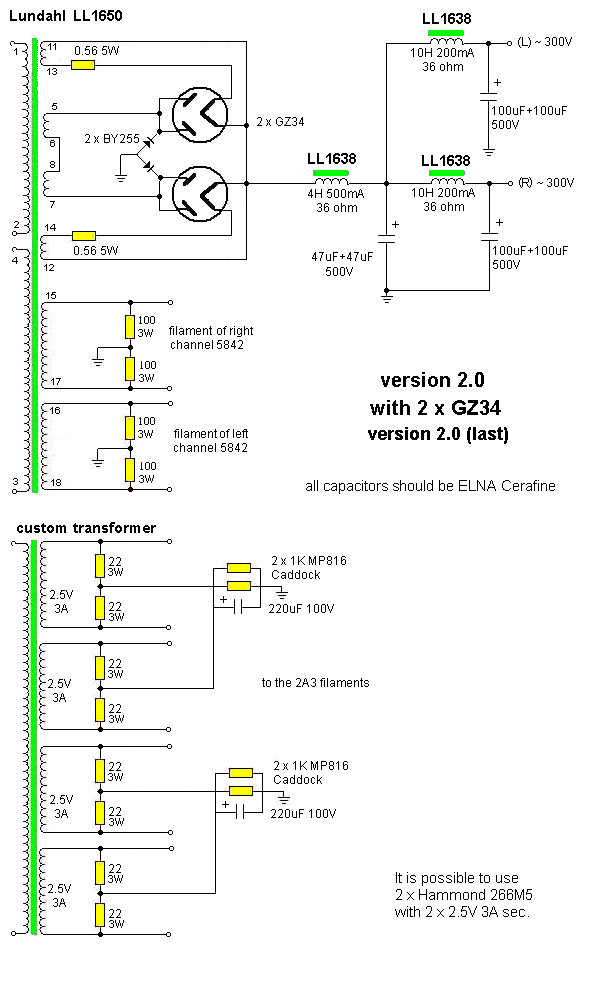 I have used 2 x 1Kohm MP816 Caddock resistors for the automatic bias of the 2A3 but a single normal 470ohm 25W could be used but sonic performance could be compromized.