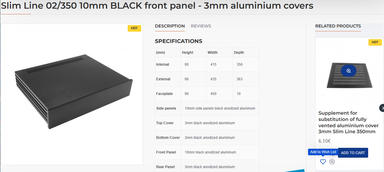 Slim Line 02/350 10mm BLACK front panel - 3mm aluminium covers