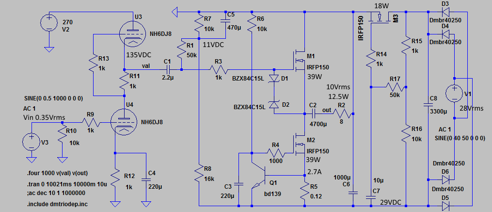 upper tube cathode voltage is at 135Vand the lower tube cathode is at 3V.